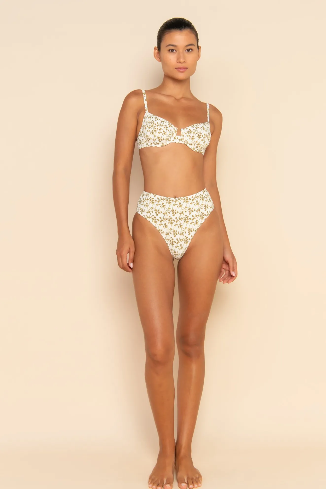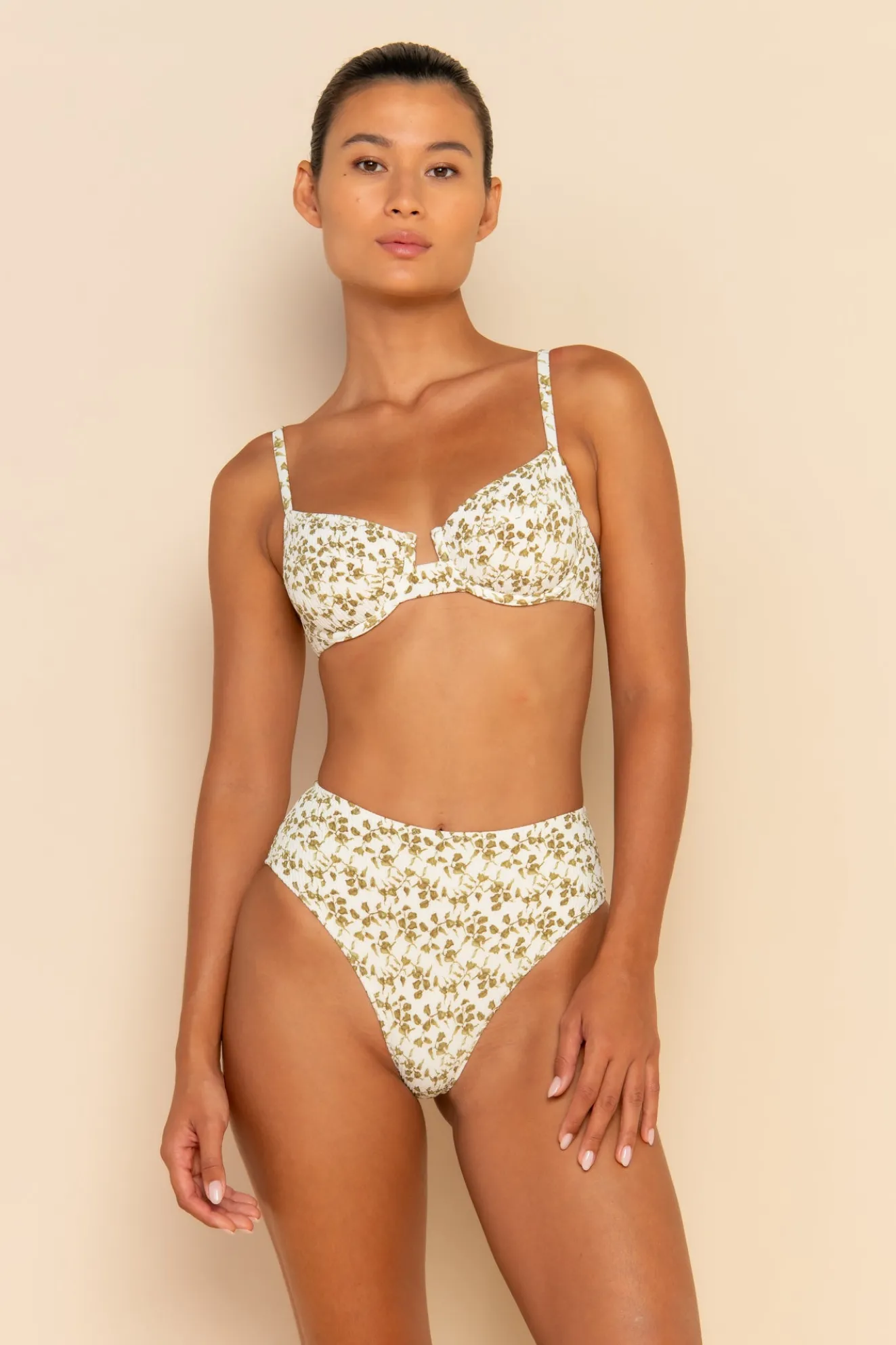 The Bowie Bottom is our best selling, high waisted cut in our exclusive Fleur print. Featuring high rise sides and cheeky back coverage. Pair with any Fleur bottom to complete your set.