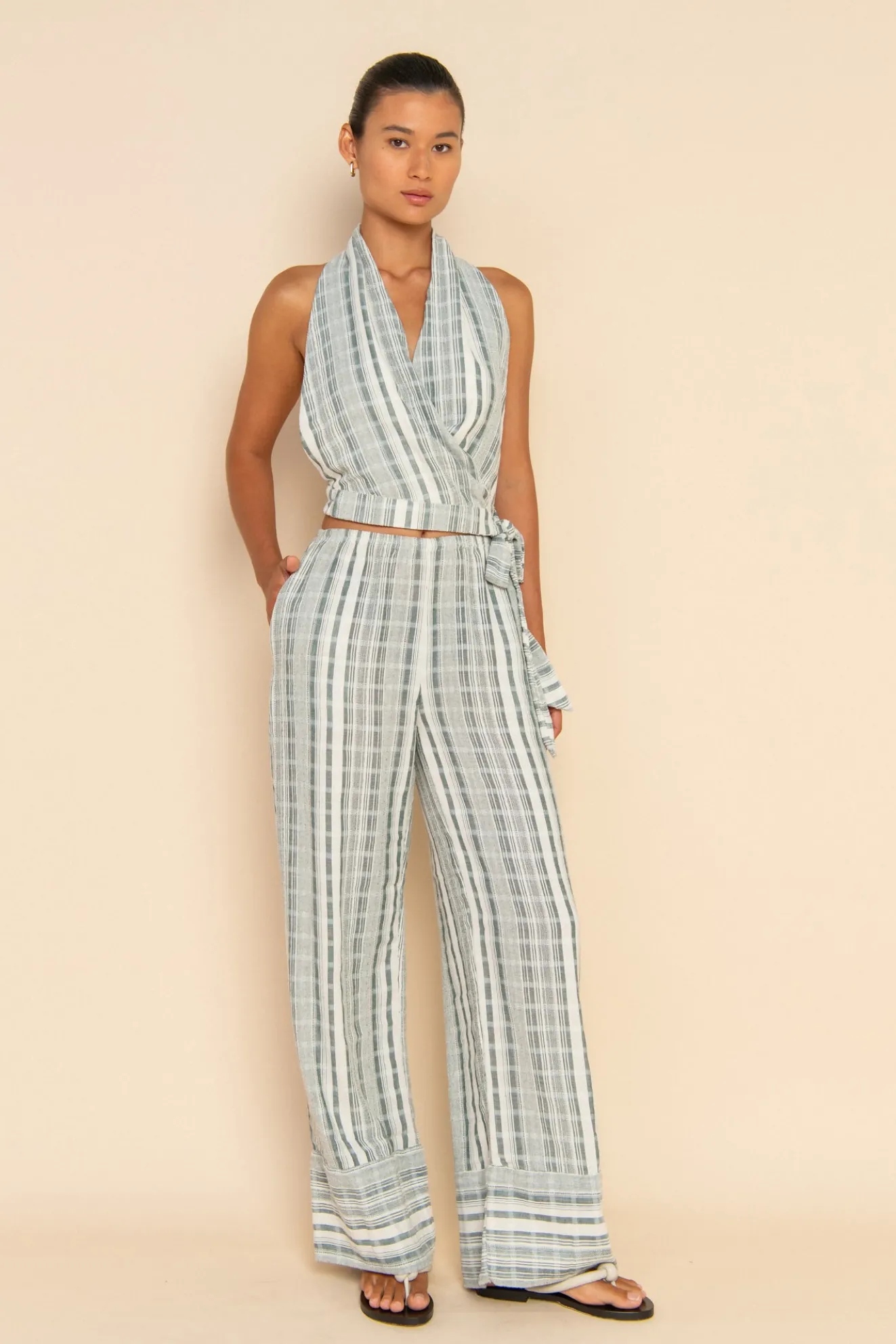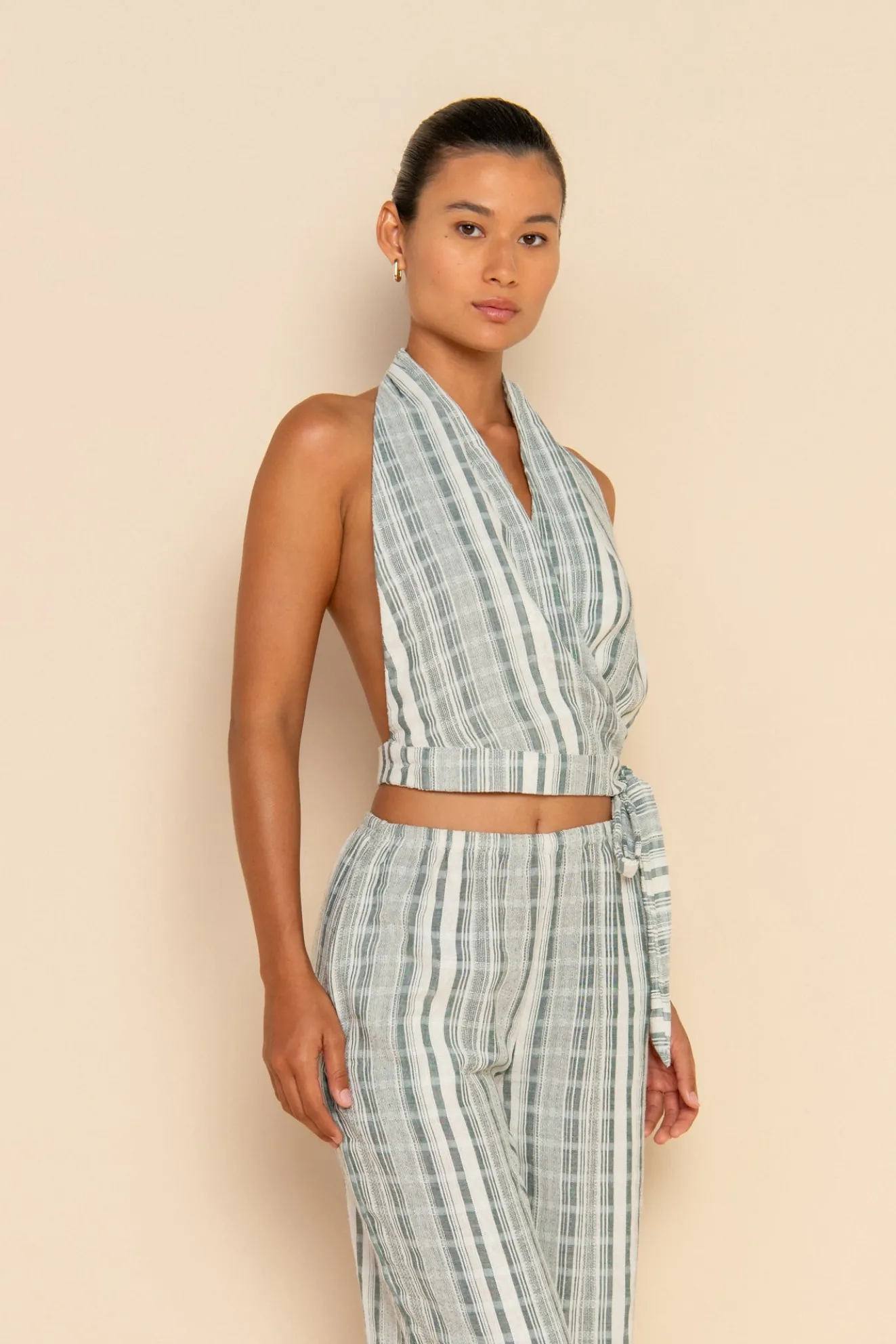 The Emi Halter Top is an elevated design, taking you from beach to bar. Featuring an adjustable waist design and side tie to cater for any body type. Pair with the Emi Pant to complete your fit.