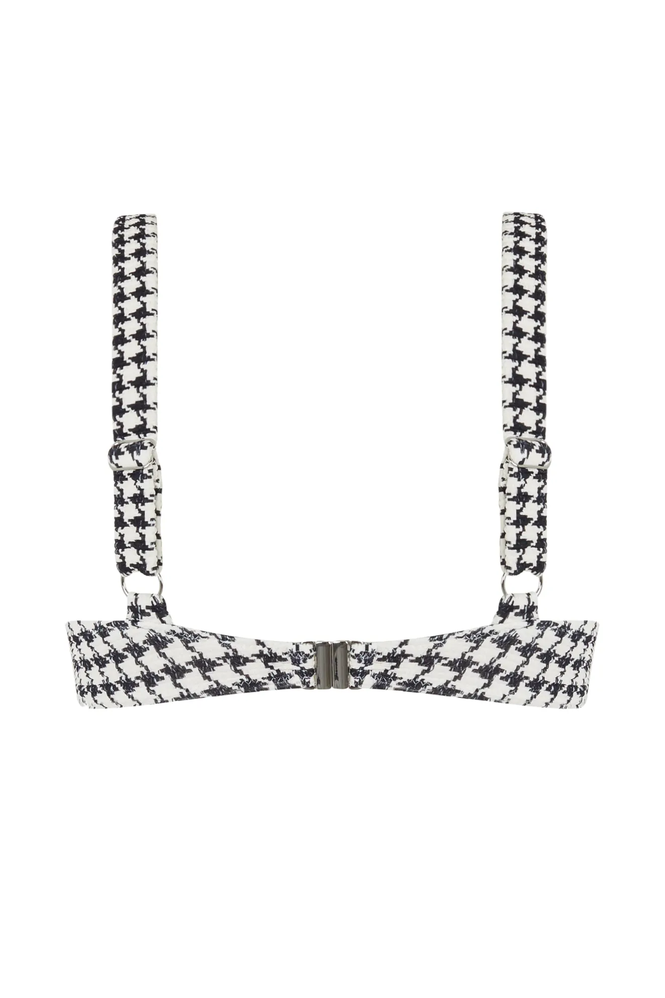 The Escape Bra Cup in Houndstooth is timeless and chic, featuring an underwired half-cup design for medium support. Crafted from our Signature Elce Textured fabric in an exclusive print, it includes thick adjustable straps and an adjustable back closure clasp for a tailored fit, we recommend selecting a size to suit your bust, as the back strap is adjustable. Size up if between sizes, or wanting more coverage. Double lined for added comfort.
