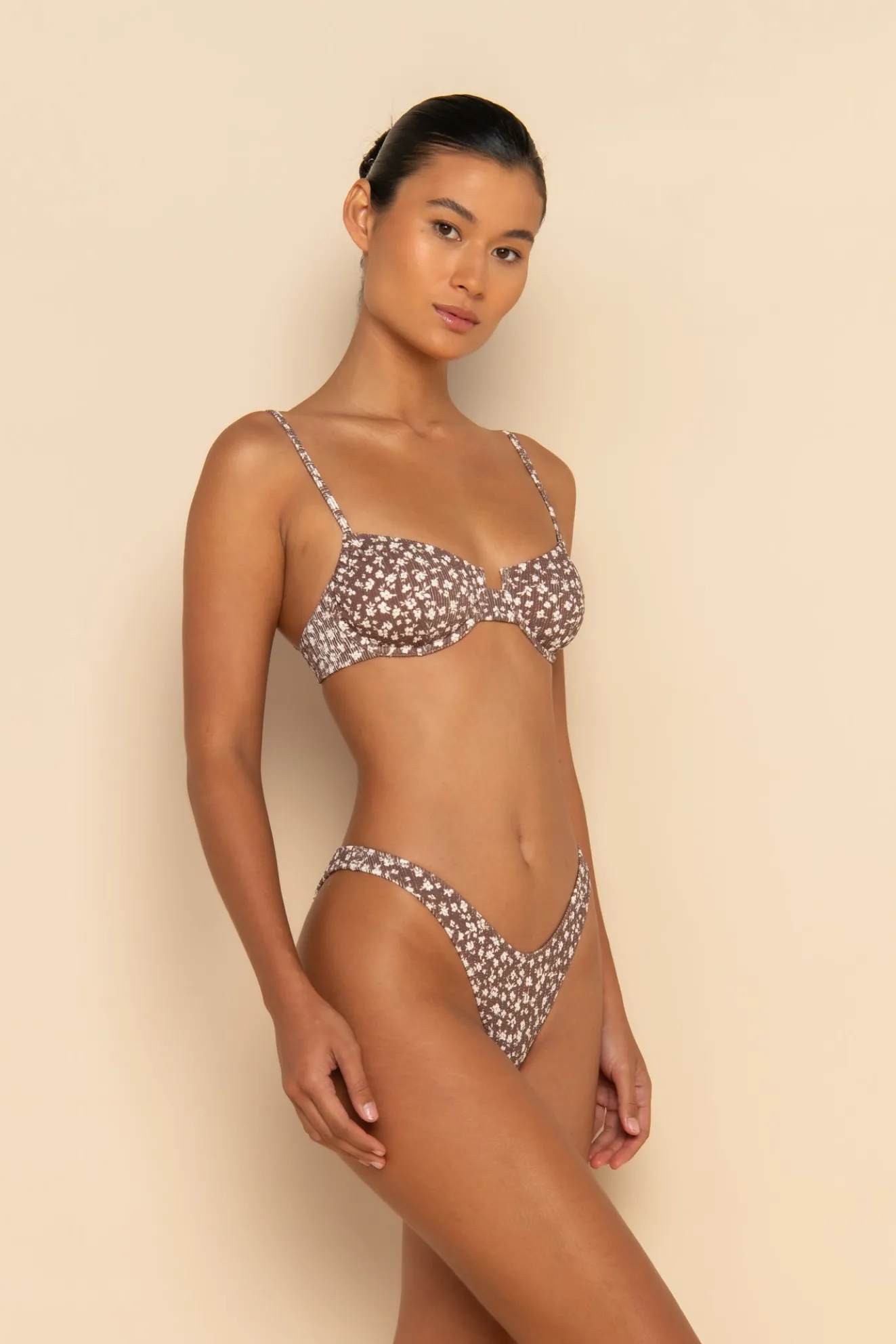 The Max bottom features a curved waistband and is designed to be worn on the hips to enhance your natural shape. Crafted from our Signature Elce Textured fabric in exclusive print. These bottoms are the perfect design if you are after a cheekier look, with medium back coverage. Pair with the Mae Bra cup to complete the look.
