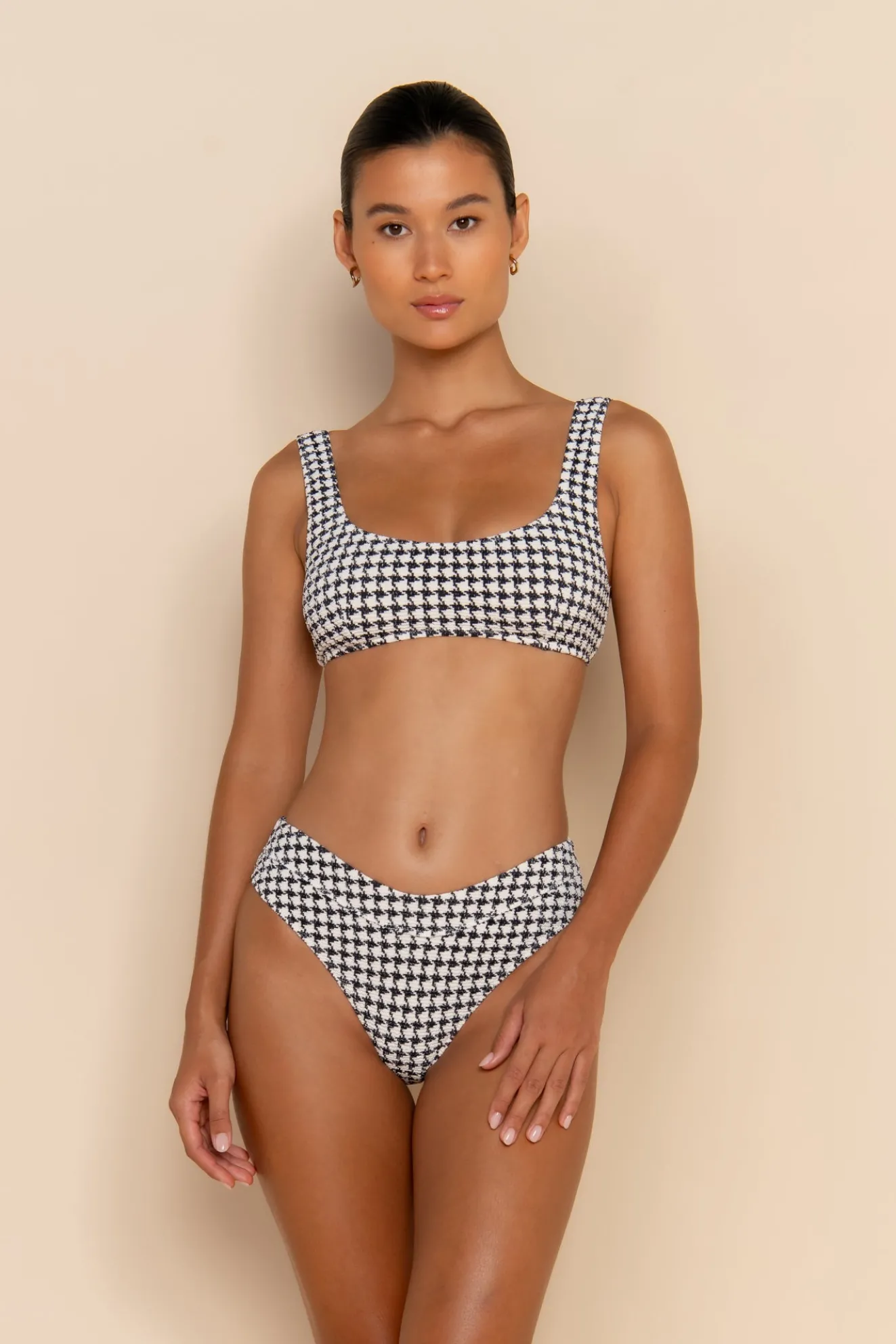 The Escape Mid-Rise Bottom combines style and comfort with its exclusive print on our signature textured fabric. Designed for mid-full coverage, these bottoms offer a flattering mid-rise fit with a curved waist design that enhances your silhouette. The seam waist panel ensures a secure fit, these bottoms are true to size, ensuring a comfortable and confident wear. Double lined for added comfort.