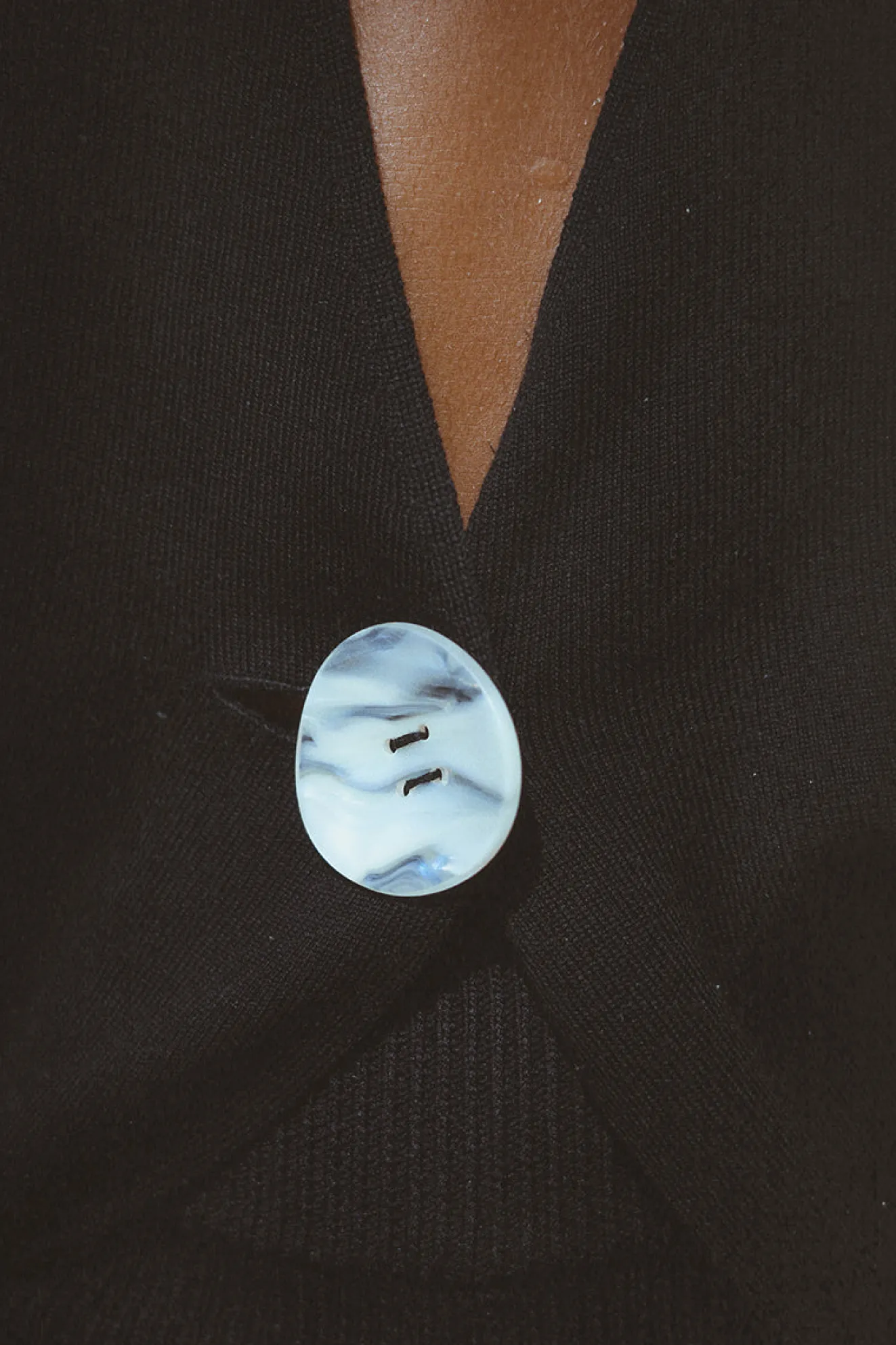 Relaxed fit knit shirt crafted in a soft tender knit, featuring marbled button closure and V-neckline. An elevated basic that can be paired back with jeans or the sol knit short for everyday wear.