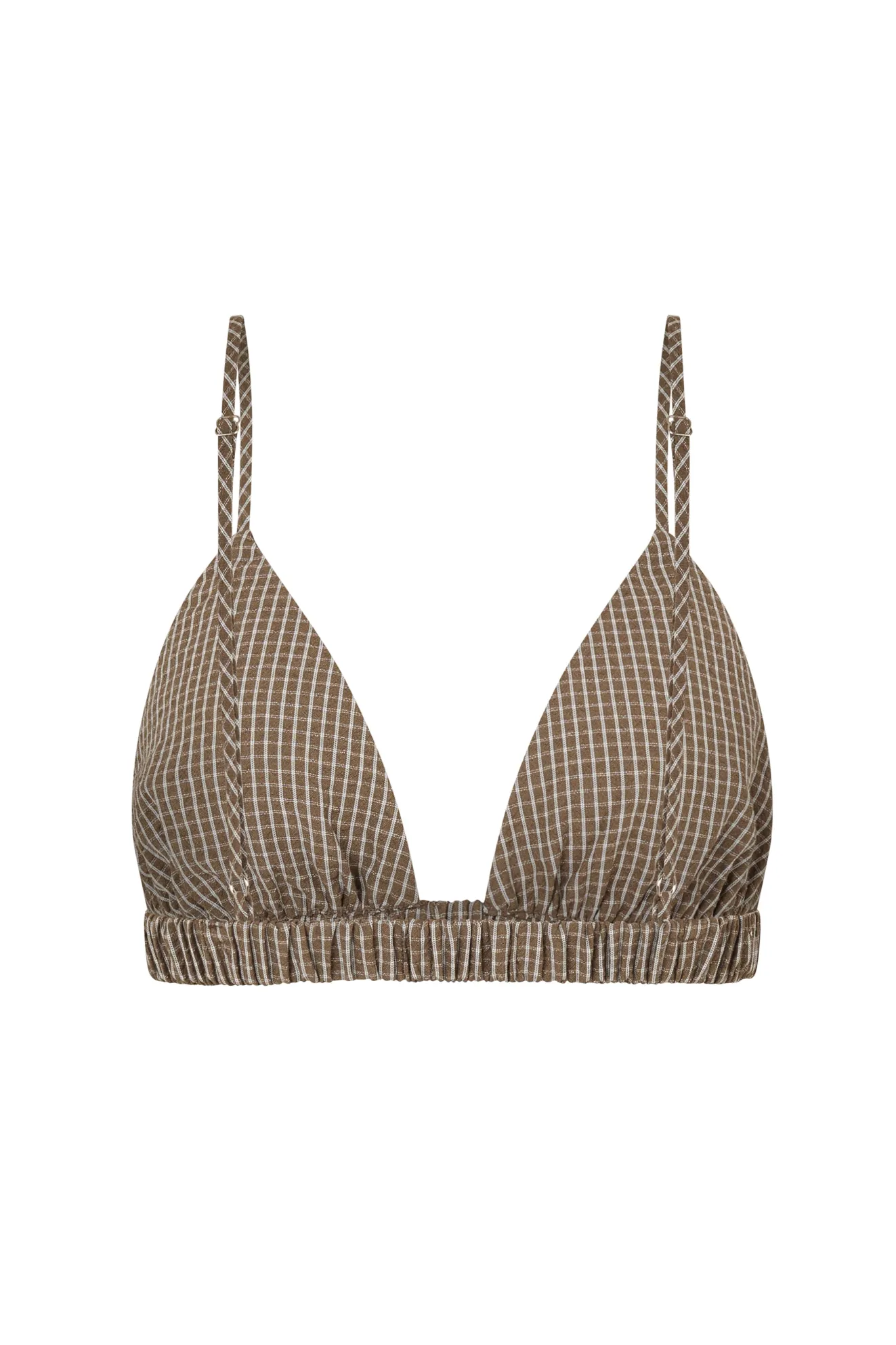 The Josefina Bralette is a minimalist essential, designed for effortless style and comfort. Featuring a classic triangle bralette silhouette, it offers adjustable straps and an elasticated under-bust. Crafted in a soft mini-check fabric, pair it with the Josefina Shirt and Short for a chic, coordinated look that blends timeless design with contemporary ease.
