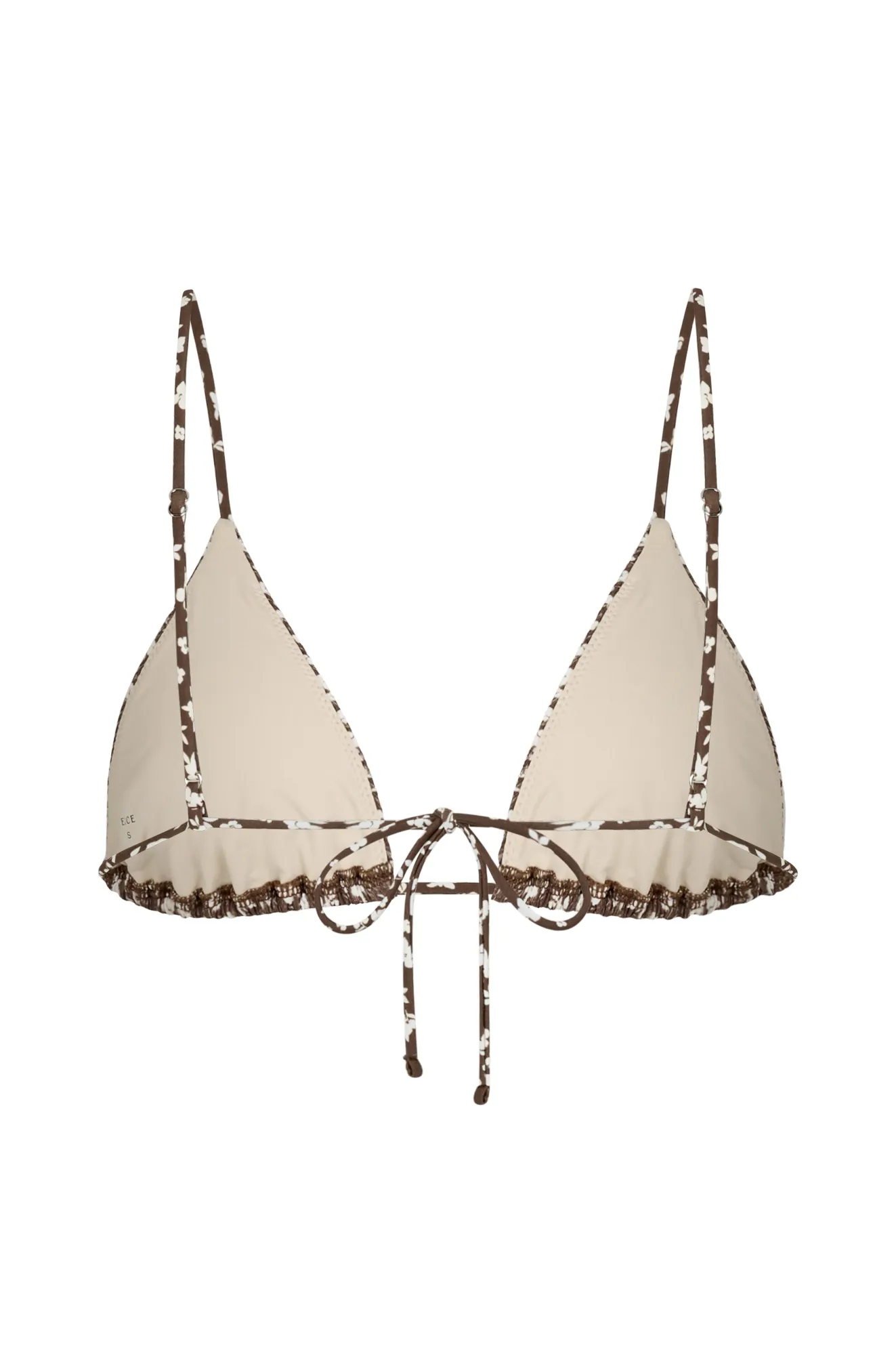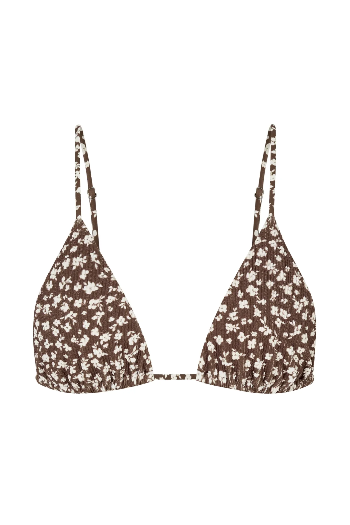 The Kaia Top is a classic, minimalist triangle style, designed with adjustable straps and a tie-back closure, allowing you to adjust the fit to your liking. The drawstring cups make for the perfect tanning essential with minimal coverage in our Signature Elce Textured fabric in exclusive print. Lined for comfort, this top is an essential for those who prefer a sleek, barely-there look. Size up if you prefer more coverage.