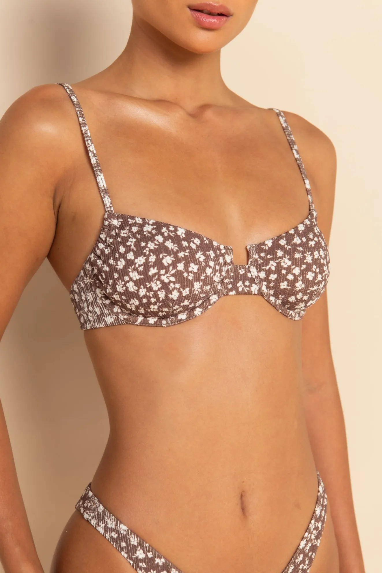 The Mae Bra Cup is crafted from our signature Elce Textured fabric in exclusive print that offers light to medium support. Featuring a half-cup design with underwire and a centre front cut-out, this bra cup includes a drawstring detail on the cups, allowing you to adjust for more or less coverage. The thin adjustable straps and adjustable back clasp ensure a tailored fit. Double-lined for added comfort. If you’re between sizes or prefer more coverage, we recommend sizing up. Recommended for cup size A to C for best fit.
